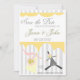 Faites savoir à tous vos amis et à votre famille de réserver la date avec cette carte charmante. La carte présente une mariée et un marié avec un fond décoratif rayé.