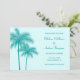 Annoncez votre mariage sur la plage avec style avec cette annonce de mariage tendance "save the date" avec palmier en bleu sarcelle ! Personnalisez facilement avec vos informations. Sélectionnez le bouton de personnalisation pour changer le style, la couleur et la taille de la police.