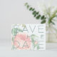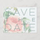 This Save the Date announcement postcard template offers an elegant watercolor floral background in teals and pinks with an oversized font and customizable copy, just click the "Personalize" button to make this your own and congratulations, enjoy!