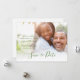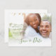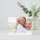 The design features a custom horizontal photograph front with template details in the space left of the couple. Replace the placeholder photograph with your similar horizontal format photo that leaves space to the side for the text. On the back, replace the placeholder QR code with your wedding website QR code. Personalize the template information, remove any text or click customize to select a font style, size, and colour you prefer. Placeholder photograph courtesy pixabay.com.