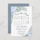 Cette belle carte Save the Date présente un design boho chic et floral rustique avec votre jour de mariage marqué d'un coeur sur un calendrier entouré de roses d'aquarelle peints à la main et de fleurs dans les tons bleu poussiéreux. Élégante, élégante et chic, cette carte est un excellent moyen de faire connaître à vos amis et à votre famille la date de votre journée spéciale.