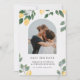 Famille d'Invitations et amis pour célébrer votre mariage avec ce pays chic citron d'été thème Enregistrer la carte de date. Le design présente un tableau du couple heureux encadré dans une arche, un arrière - plan texturé avec de beaux citrons d'agrumes, des fleurs en fleurs blanches et un feuillage vert peint à la main.