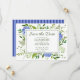 Cette carte de sauvegarde de date à l'hydrangea bleu est à la fois moderne et fantaisiste. Sa belle végétation aquarelle vaporeuse et multicolore et ses hydrangeas bleus avec un dos bleu rayé coordonné sont parfaits pour un mariage de printemps ou d'été. C'est juste ce qu'il faut pour faire savoir à vos amis et à votre famille quand et où vous prévoyez de vous marier. En quelques secondes, vous pouvez voir à quoi ressembleront vos cartes. Il suffit de sélectionner Personnaliser ce modèle et de saisir vos informations pour voir vos cartes uniques et magnifiques.