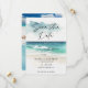 Aquarelle moderne Script Ocean Beach Code QR Enregistrer la date Annonce - Une magnifique scène de plage aquarelle avec typographie de script moderne. Avec une photo du couple heureux au dos code QR est également au dos de l'invitation.Save the Date fait partie d'une collection.