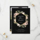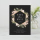 Ce mariage époustouflant, à l'exception des cartes datées, présente un cadre géométrique en faux or entouré de fleurs vertes et d'aquarelle neutres dans des tons neutres et terrestres tels que la pêche au beige, le rose poussiéreux, et le vert doux avec des accents d'or et des feuilles. Un élégant look boho floral sur un arrière - plan noir foncé. Le dos de la carte contient deux de vos photos personnelles et vous permet d'obtenir du texte ou des détails supplémentaires.
