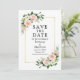Elégant Aquarelle rose Blush Roses et Fleurs blanches Enregistrer La Carte Faire-part Mariage date inclut une verdure botanique sur un cadre doré.