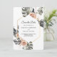 Annoncez votre grand jour avec l'élégance tropicale en utilisant cette aquarelle moderne Enregistrer la carte Date. Doté de fleurs roses douces, de feuilles monstères luxuriants et d'un cadre doré géométrique chic, ce design allie romantisme et ambiance botanique moderne. Parfait pour les mariages à destination, les cérémonies de plage ou les célébrations à thème tropical. Personnalisez avec vos noms, date et emplacement mariage pour un faire-part élégant et inoubliable.