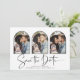 Modern manuscrit Enregistrer la Date Multiple Carte photo dans une police qui est élégant et évoque une sensation romantique manuscrite. Conçu pour utiliser trois de vos photos préférées dans notre arche classique pour une personnalisation supplémentaire. Ajoutez facilement vos noms et dates pour un design vraiment personnalisé. Veuillez nous contacter à cedarandstring@gmail.com si vous avez besoin d'aide pour la conception ou les produits correspondants.