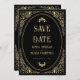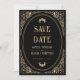 Un mariage moderne et chic sauve la date avec des bordures d'art déco en faux or et des polices vintages.