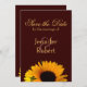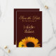 Mariage Enregistrer la date Faire-part avec la photo de tournesol. Vous pouvez facilement modifier la police, la couleur, la taille et la position du texte en cliquant sur le bouton personnaliser. Cette invitation utilise du papier de base - papier de 110 livres mat avec 50% de matériau recyclé. Customisez-le et choisissez parmi 6 types de papier.