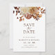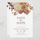 Cette élégante carte de sauvegarde à jour présente des feuilles d'aquarelle peints à la main, orange brûlé et terre cuite, ainsi que des dahlias crème et beige disposés comme un beau bouquet. Trouvez les objets correspondants dans les collections Romance d'automne.