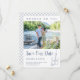 Accompagné sur vous pêche thématique Mariage enregistrer la date avec un crochet de pêche tenant des anneaux mariages en acier bleu & gris. Personnalisez l'invitation avec votre photo de fiançailles et les détails du mariage dans le bloc de texte justifié à gauche. Le dos est fini avec un motif de filet de poisson bleu acier.
