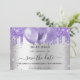 Un arrière - plan faux argenté décoré de parties scintillant et de ballons violet, couleur lavande. Personnalisez et ajoutez une date et un nom/âge. Le texte : Save the Date est écrit avec un grand script de style à la main tendance.