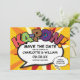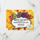 Personnalisez avec vos noms et détails pour annoncer la date de votre événement spécial. Thème de la bande dessinée pop art moderne, design rétro amusant, parfait pour les mariages, les douches de mariée, les douches de bébé, les baptêmes, les fêtes de fiançailles, les célébrations d'anniversaire, les remises de diplômes, les fêtes d'anniversaire et autres événements spéciaux tout au long de l'année ! Un design cool, tendance et amusant qui met le boum zap pow dans votre journée. Conçu par Thisisnotme©