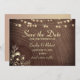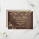 Annoncez votre journée spéciale avec cette charmante carte savourez la date, avec sa texture de grain de bois, ses lampes à cordes brillantes et ses élégants accents floraux d'or. Avec un look cosy et romantique, cette carte donne le ton parfait pour les mariages d'automne ou d'hiver, les réceptions de grange ou les fêtes de saumons.
