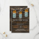 Bois rustique de Barnwood, feux à cordes pendants avec feuilles d'érable dans un mariage de automne de bocal de mason Enregistrer la date. Produits correspondants également disponibles.