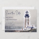 Ce mariage Save the Date présente un beau tableau de phare sur le devant et un arrière - plan bleu solide sur le dos. - par The Beach Bum