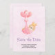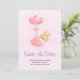 Enregistrez la carte de dattes avec une adorable illustration d'un petit lapin brun portant une petite couronne dorée. Porté par des ballons dans une couverture de coeur rose.