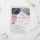 Belle invitation à la fête d'anniversaire botanique avec des fleurs rose, bleu poussiéreux et bleu marine avec des feuilles verts. POUR PLUS DE PRODUITS CORRESPONDANTS cliquez sur la collection ci-dessus ou contactez-moi.
