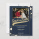 Conception de laissez-passer de saison de baseball vintage en bleu et or, sauvez la date avec photo. Personnalisez le texte comme vous le souhaitez.