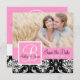 Pink, Black and White Damask Pattern Save the Date with Monogram, Initial and Names Flat Card with your engagement photo on the front and your text on the back. Fully Customizable Template. ELke Clarke©