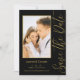 Save The Date Black Gold Stylish Script Modern Wedding Cards features a black background with your custom photo. Personalize with your text by editing the text in the text boxes provided. Designed for you by ©Evco Studio www.zazzle.com/store/evcostudio