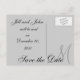 Modern, simple, black, grey and white Save the Date Postcard design by Elke Clarke ©2008. Wedding Announcement Customizable with your Date, First Names and Initial. Also choose your colours to match your wedding colour scheme.