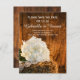 Donnez un ton décontracté et élégant à vos noces de grange avec le charmant White Hydrangea et Barn Wood Wedding Save the Date Faire-part. Ce style rustique ranch ou mariage rustique chic gardez la carte dater dispose d'une photo florale pittoresque d'une fleur d'hydrangée blanche et vintage mouchoir en lin taillé dentelle blanche avec un arrière - plan en bois de grange brun patiné. Idéal pour une visite ou une idée d'une cérémonie de thème de ferme informelle et d'un événement de réception. Disponible sous forme d'invitation imprimée à l'envoi ou en téléchargement numérique pour un partage numériquement en ligne facile.