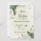 Save The Date blanc & sauge vert fleurs mariage botanique
