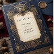Faites une annonce grandiose avec cette carte "Save the Date", une fusion parfaite entre l'héraldique médiévale et le charme céleste. La palette de couleurs bleu marine profond et or opulent crée une atmosphère luxueuse et sophistiquée, tandis que le blason central avec épées croisées et volutes ornées évoque un sentiment d'élégance intemporelle. Ornée de motifs célestes subtils et de fioritures florales détaillées, cette carte est conçue pour impressionner. C'est un moyen inoubliable d'informer vos invités de la date de votre mariage, préparant le terrain pour une célébration imprégnée de romance et d'attrait historique.
