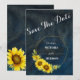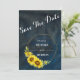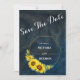 Save The Date Bleu marine et tournesols dorés géométriques