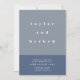 Faire-part de mariage minimaliste moderne avec typographie audacieuse et bel ensemble bleu poussiéreux. Customisez vos détails et changez les couleurs dans l'option "Customiser plus loin".