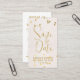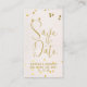 A delicate soft pink bridal blush with gold confetti printed details on these Save the Dates. A cost effective way to share your special day as business cards are easy to carry round or stick on your notice board. Just add your wedding details
