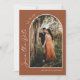 Faites plaisir à vos invités mariages pour votre journée spéciale avec cette photo moderne en terre cuite deux, enregistrez la carte de date. Avec un design d'arc avec des vibes de boho, cette carte est parfaite pour afficher deux superbes photos de vous et de votre partenaire et est garantie pour que vos invités soient excités pour la grande journée. Alors, faites une déclaration avec cette unique enregistrer la carte de date et laisser le mariage planifier commencer!