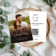Ce boho Save the Date est non seulement beau mais aussi simple et moderne, ce qui le rend idéal pour toute saison. Il présente une photo en dégradé du couple, ainsi qu'un mélange d'élégants scripts de calligraphie, serif, et polices sans serif. Le dos de l'invitation présente un superbe monogramme orné de vignes, un code QR et le site web mariage. Pour personnaliser ce design, cliquez simplement sur "Personnaliser ce design", téléchargez votre photo, entrez vos informations et Zazzle s'occupera du reste. Cette magnifique invitation fait partie de la collection de Mariages floraux Sage Green Boho.