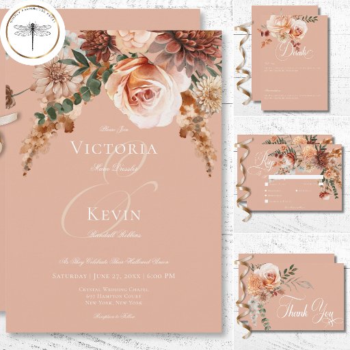 Save The Date Boho Peach & Rust Floral Peach Blush Mariage
