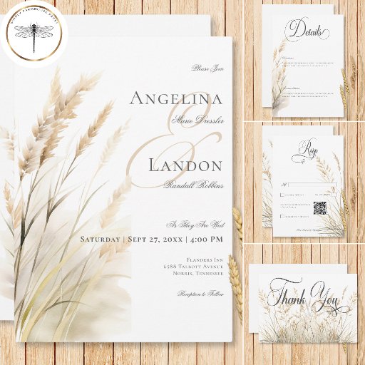 Save The Date Boho Rustique séché Tan Grass Mariage