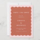 Un mariage moderne et élégant enregistrer le faire-part de date avec une forme de pétoncle ondulé en terre cuite avec un bord rose vif avec une police blanche. Ajoutez votre site Web mariage et votre code QR au verso.
