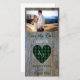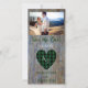 Mariage en bois rustique monogrammed photo Enregistrer la Date annonces - Photo couple personnalisée en haut. Le coeur rustique et vert du buffle plaid a des initiales monogrammées de la mariée et du marié. Lit Enregistrer la date ci-dessous photo dans élégant script vert avec effet d'ombre et date mariage. Noms de mariée et de mariée personnalisés en bas avec ombre portée, en lettres vertes assorties. Avec la photo en bois rustique arrière - plan de grains de bois cicatrisés et en détresse. Convient aux mariages rustiques, aux mariages de grange, aux thèmes de boho mariage et aux mariages des forêts boisées. Idéal pour la douche nuptiale rustique ou la fête d'anniversaire des mariages de l'ouest du pays.