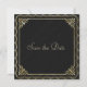 Bordure d'or élégante et élégante sur arrière - plan noir texturé "Enregistrer la date" carte qui peut être customisé.