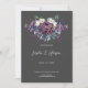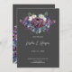 Notre suite de faire-part de mariage gothique est parfaite pour les couples qui recherchent une esthétique sombre et moody. Le bouquet floral à l'aquarelle est orné de fleurs violettes, violettes et indigo, aux roses blanches, donnant à la suite un aspect audacieux et spectaculaire. L'arrière - plan de couleur foncée rend les couleurs pop et crée un contraste saisissant.