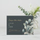 Cette élégante carte "Save the Date" présente un design saisissant avec des feuilles d'eucalyptus luxuriants dans des teintes vertes et douces sur un arrière - plan vert foncé, agrémenté de détails dorés qui ajoutent une touche luxueuse. Le script en or écrit à la main en haut met en surbrillance le message "Enregistrer la date", tandis que les noms et les détails de l’événement du couple sont soigneusement affichés dans une police serif moderne. Parfait pour les couples à la recherche d'un look sophistiqué et d'inspiration nature pour leur papeterie mariage, cette carte donne le ton d'une célébration intemporelle. Le design moderne s'intègre sans effort à une variété de thèmes mariages, y compris les styles rustique, botanique ou contemporain, en s'assurant qu'il complète n'importe quel événement tout en laissant une impression durable.