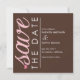 This adorable Save The Date announcement features the phrase "save the date" in pink and white on the left of the announcement, and your personalization on the right in white.