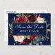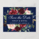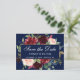 Save the Date Burgundy Floral Blue Gold Frame Announcement Postcard