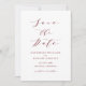 Annoncez votre date de mariage à la famille et à l'ami avec cette personnalisable enregistrer la carte de date. Il dispose d'un script minimaliste et d'une typographie simple avec motif à bandes pour le dos. Les couleurs sur cette page, à l'exception de l'annonce de date, sont blanches et rouges bordeaux, parfaits pour n'importe quel thème mariage. Personnalisez en ajoutant le nom, la date, le lieu et d'autres détails de l'événement.