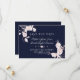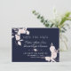 Élégant design de carte avec cadre de fleurs blanches or rose. Il comporte un élégant cadre de fleurs blanches or rose faux, un séparateur floral or rose, le tout sur un fond bleu foncé. Utilisez l'outil de personnalisation pour ajouter vos informations, changer la couleur de fond. Pour les articles assortis, veuillez visiter ma Collection de Fleurs Blanches Or Rose.