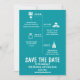 Racontez à tous vos invités un peu sur votre relation ~ peut-être des faits amusants qu'ils ne connaissent pas ! Vos invités adoreront cette fantaisie amusante Enregistrer la date dans la couleur Turquoise / Sarcelle et Blanc ! Pour les demandes de modifications de conception personnalisées par le concepteur indépendant, veuillez envoyer un courriel à paula@labellarue.com AVANT de personnaliser ou de passer une commande.