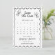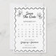 Enregistrez la date avec style grâce à ce calendrier au design fantaisiste dessiné à la main ! Avec des détails manuscrits excentriques, il ajoute une touche ludique et personnelle à votre annonce de mariage, ce qui en fait la façon idéale de marquer ce jour spécial sur les calendriers de vos invités.