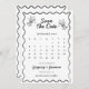 Sauvez la date avec style grâce à ce calendrier fantaisiste dessiné à la main ! Avec des détails manuscrits excentriques, il ajoute une touche ludique et personnelle à votre annonce de mariage, ce qui en fait la façon idéale de marquer ce jour spécial sur les calendriers de vos invités.