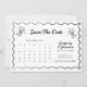 Sauvegardez la date avec style grâce à ce design de calendrier fantaisiste dessiné à la main ! Avec des détails manuscrits excentriques, il ajoute une touche ludique et personnelle à votre annonce de mariage, ce qui en fait la façon idéale de marquer le jour J sur les calendriers de vos invités.